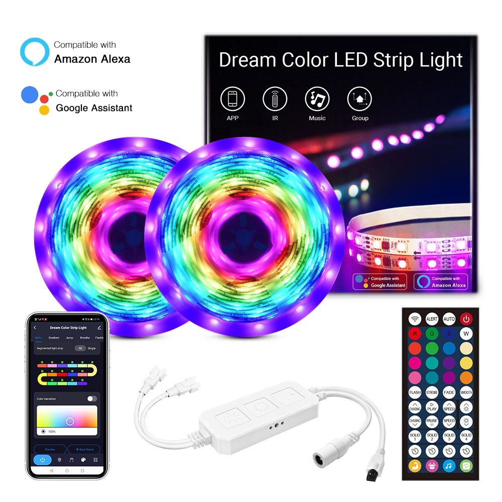 Elevate your lighting game with the Tuya Smart 10m RGBIC DreamColor LED Strip Kit—a complete, intelligent solution for immersive ambiance and effortless control. This kit includes one 5-meter RGBIC strips, a smart controller, a smart remote, and a power supply, giving you everything you need for a seamless plug-and-play experience.