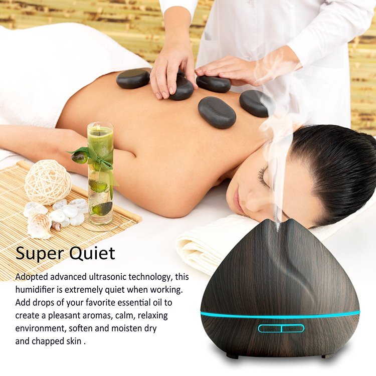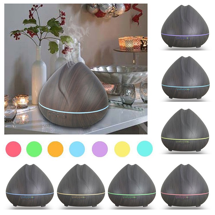 Aroma Diffuser with 7-Color LED Lighting – Dark Wood Look | 440ml Ultrasonic Humidifier for Home, Office & Wellness Spaces