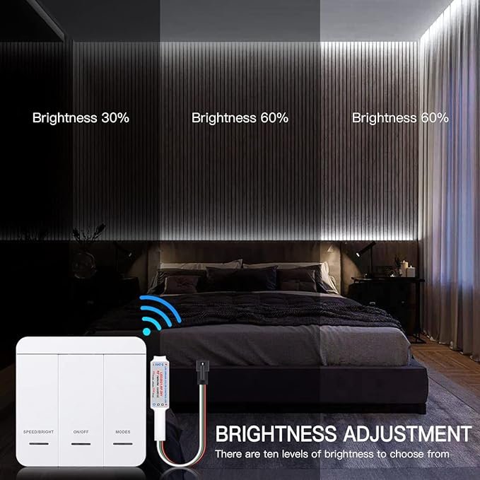 Featuring a sleek wall-mounted panel with three dedicated buttons—SPEED/BRIGHT, ON/OFF, and MODE—this controller offers instant access to key lighting functions. Adjust brightness levels or animation speed with a single touch, toggle power effortlessly, and cycle through multiple lighting modes to match your mood or occasion.