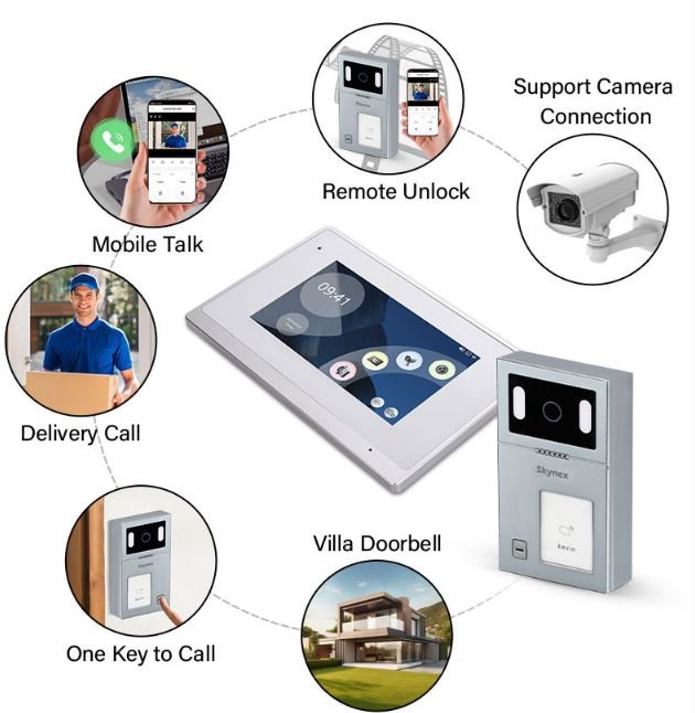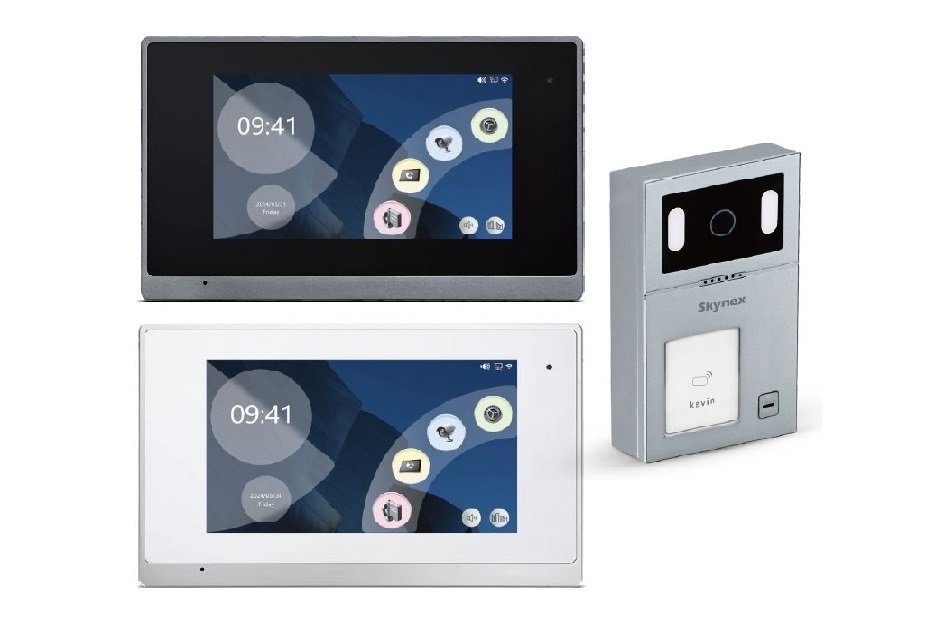 Tuya Smart Skynex Intercom Model M75T + P901. An intercom which can unlock up to 2 doors separately and which has also an inbuilt card reader.