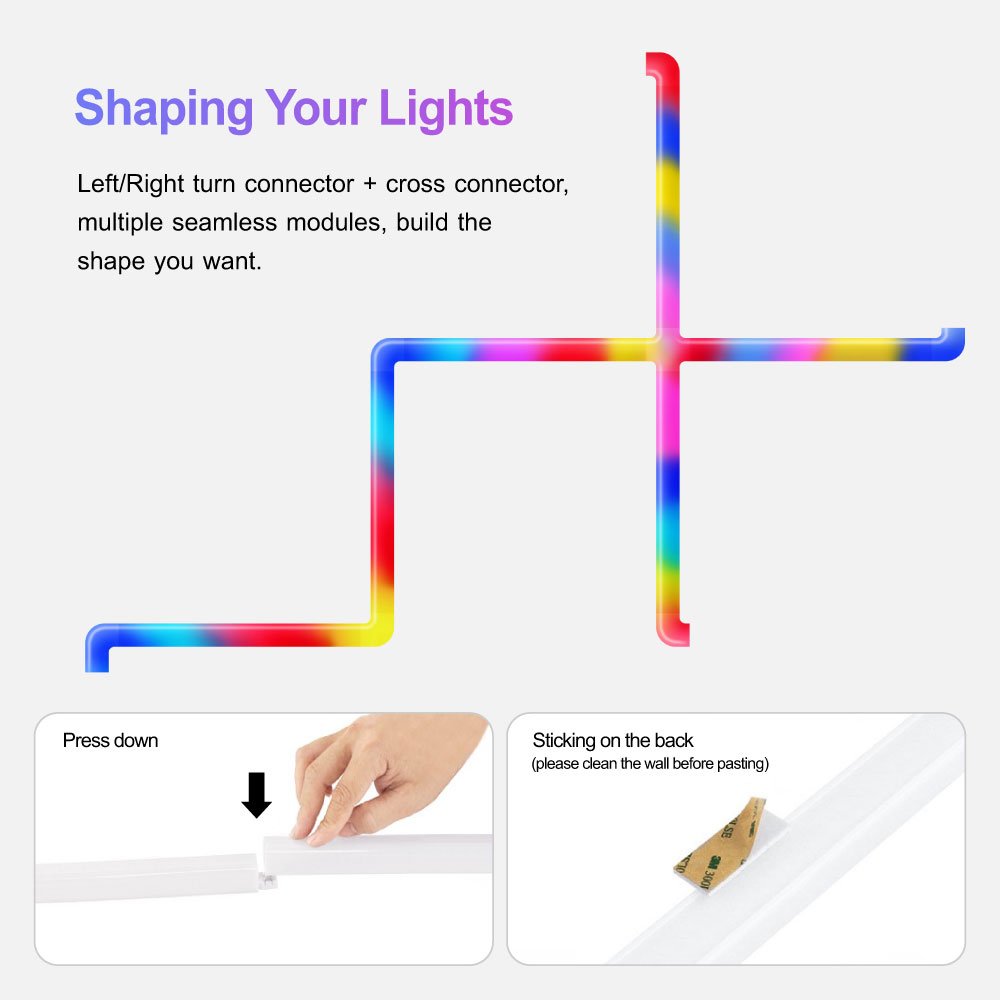 Redefine your walls with Tuya Smart Glide Wall Light Bars—a sleek 6-piece lighting system that brings creative control, stunning color effects, and smart home convenience to any space. With vibrant RGBIC technology and an elegant modular design, these wall-mounted light bars transform living rooms, gaming setups, entertainment zones, and even modern office environments into dynamic visual statements.