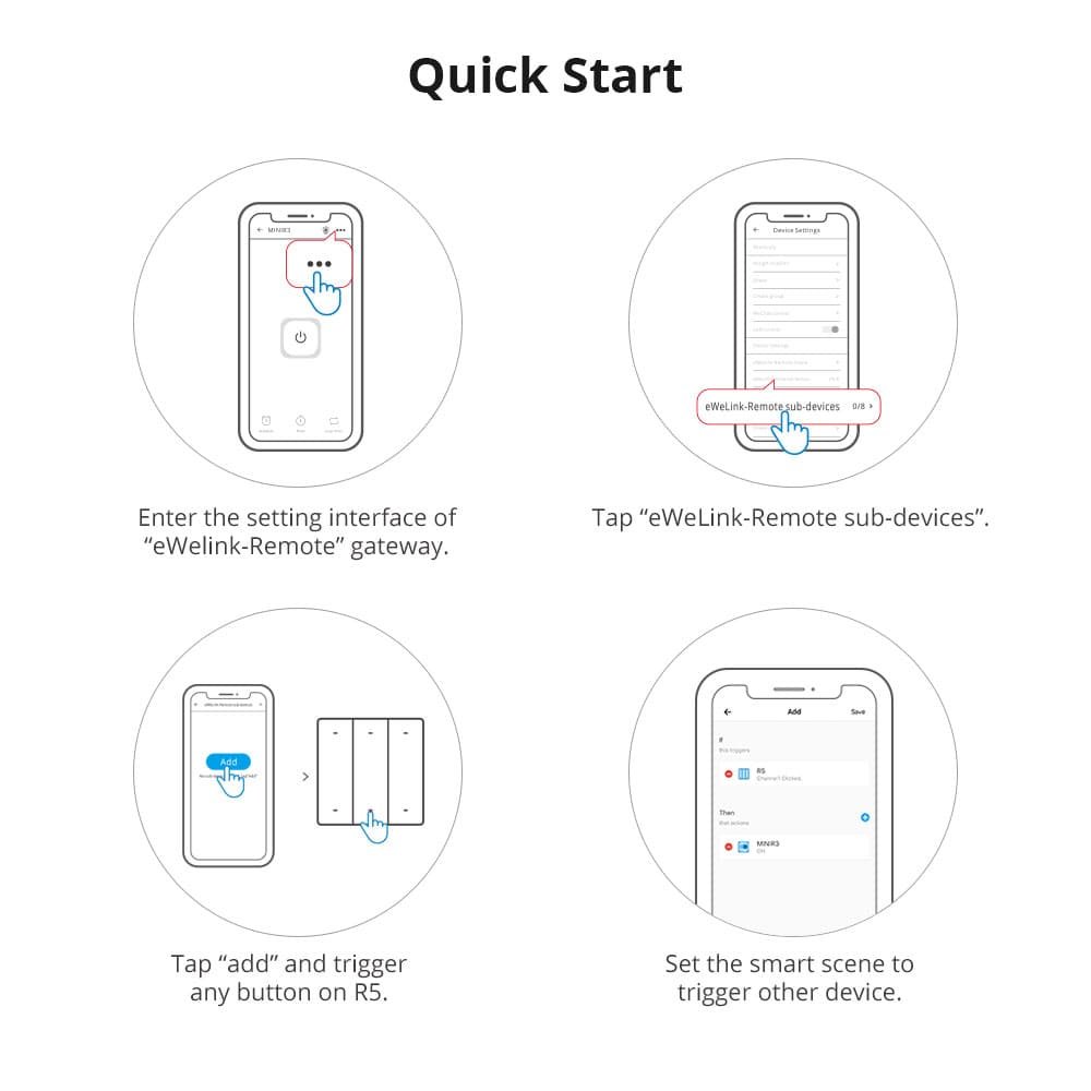 Pair with Sonoff RF Bridge or compatible gateways to link the R5 to your smart home network. Once connected, you can assign scenes, monitor status, and update configurations via the eWeLink app.