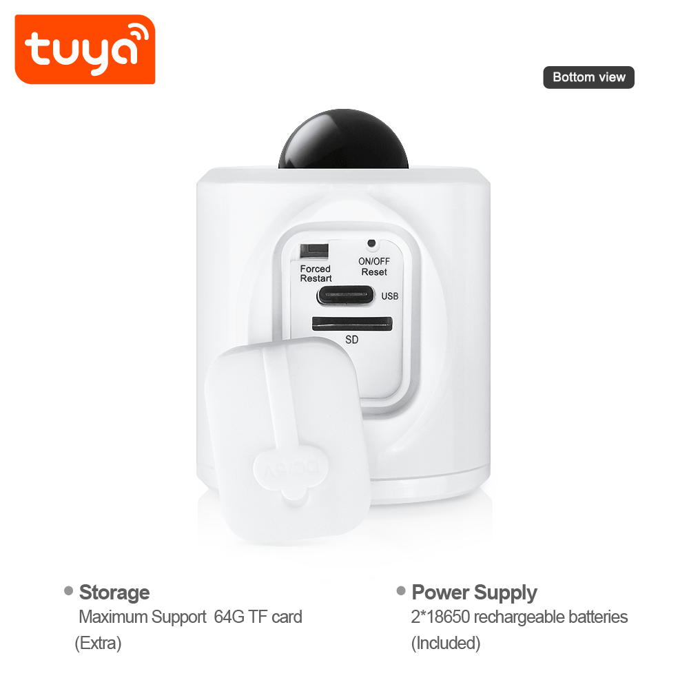 Choose between cloud storage or a Max64GB TF card for video storage. Access recordings remotely via the Tuya Smart or Smart Life apps.