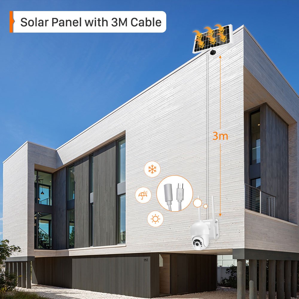 - Uninterrupted Surveillance: Solar panels charge the built-in battery during the day, ensuring continuous operation. No power outages or dead batteries!