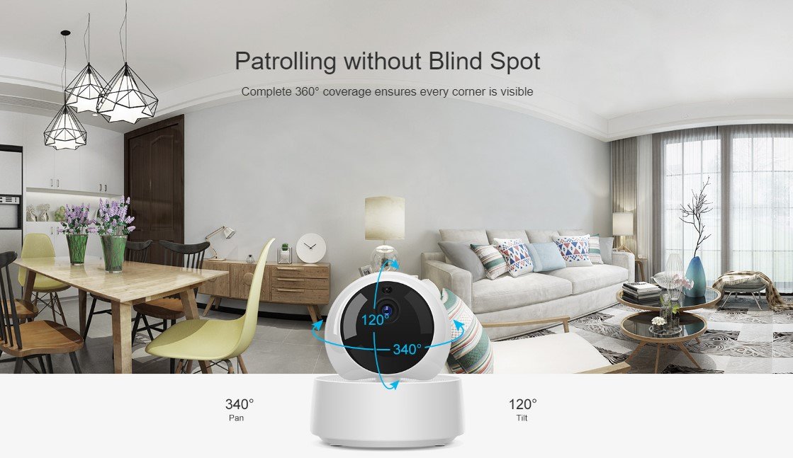 Captures crystal-clear footage for detailed monitoring and playback. - 360° Horizontal Rotation + 120° Tilt